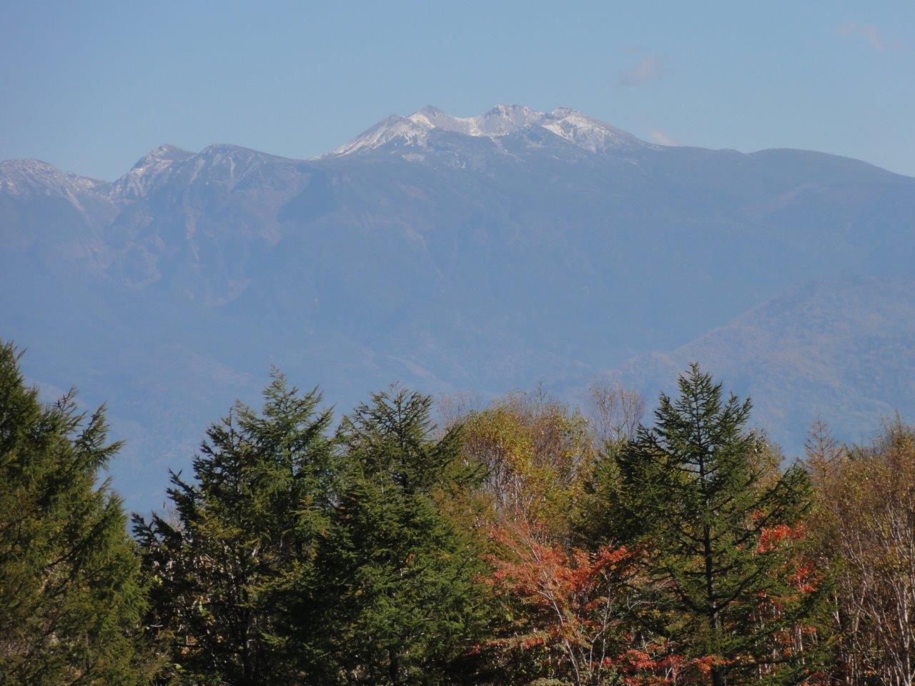 左は乗鞍岳のUpです。冠雪してました。右は笠ケ岳です。穂高も木々の間から見えるのですが写真は割愛です。
