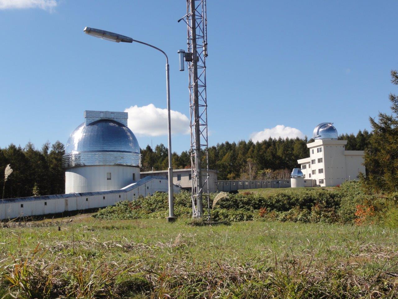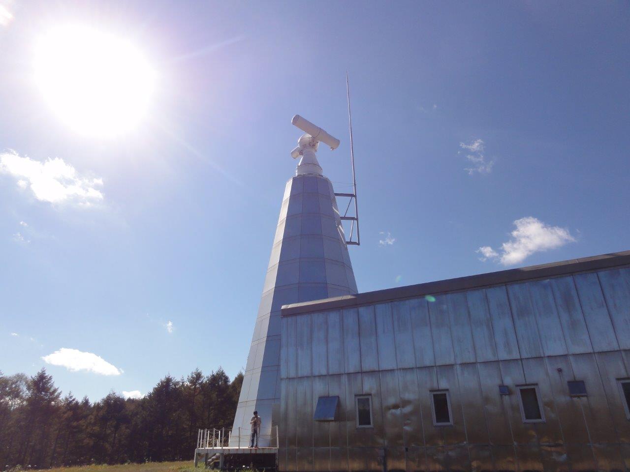 左の写真ののっぽの望遠鏡は太陽望遠鏡です。これの制御コンピュータシステムの定期点検を行います。