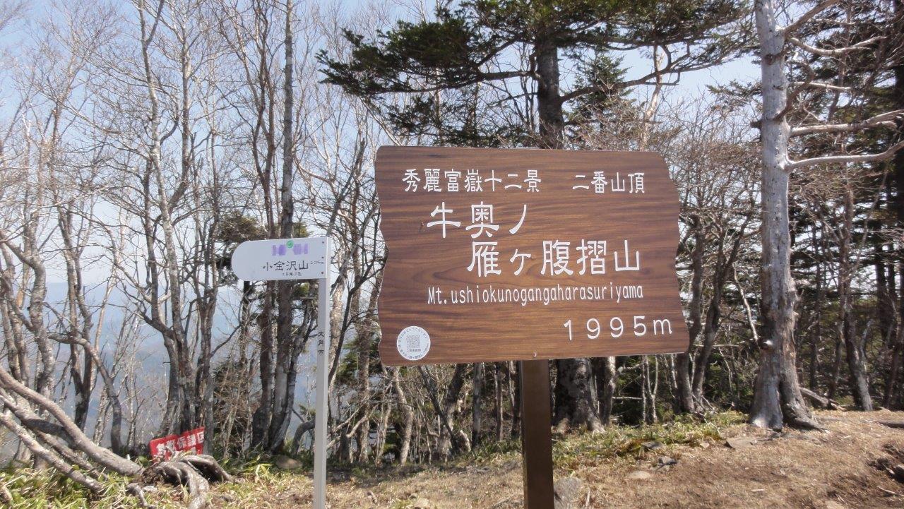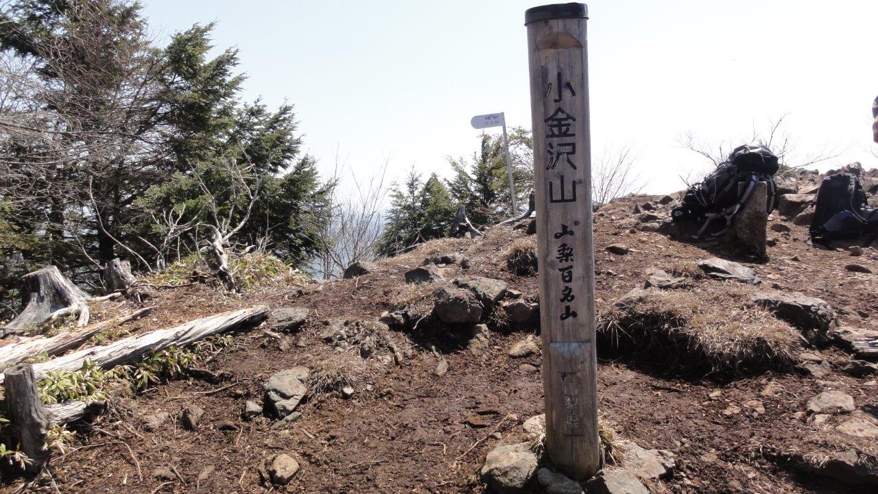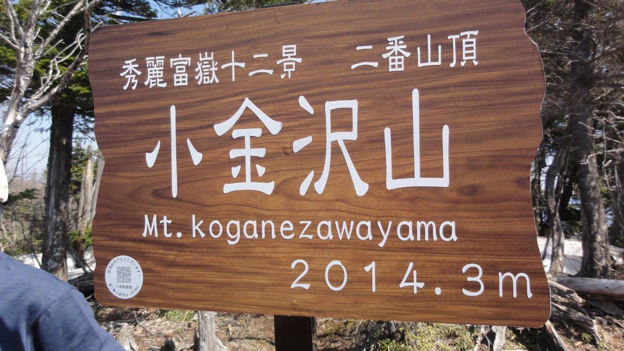 真新しい小金沢山2014.3mの標識です。本当は2014年3月にきたかったのですが雪が多すぎたので4月になってしまいました。ここからも富士山が良く見えます。