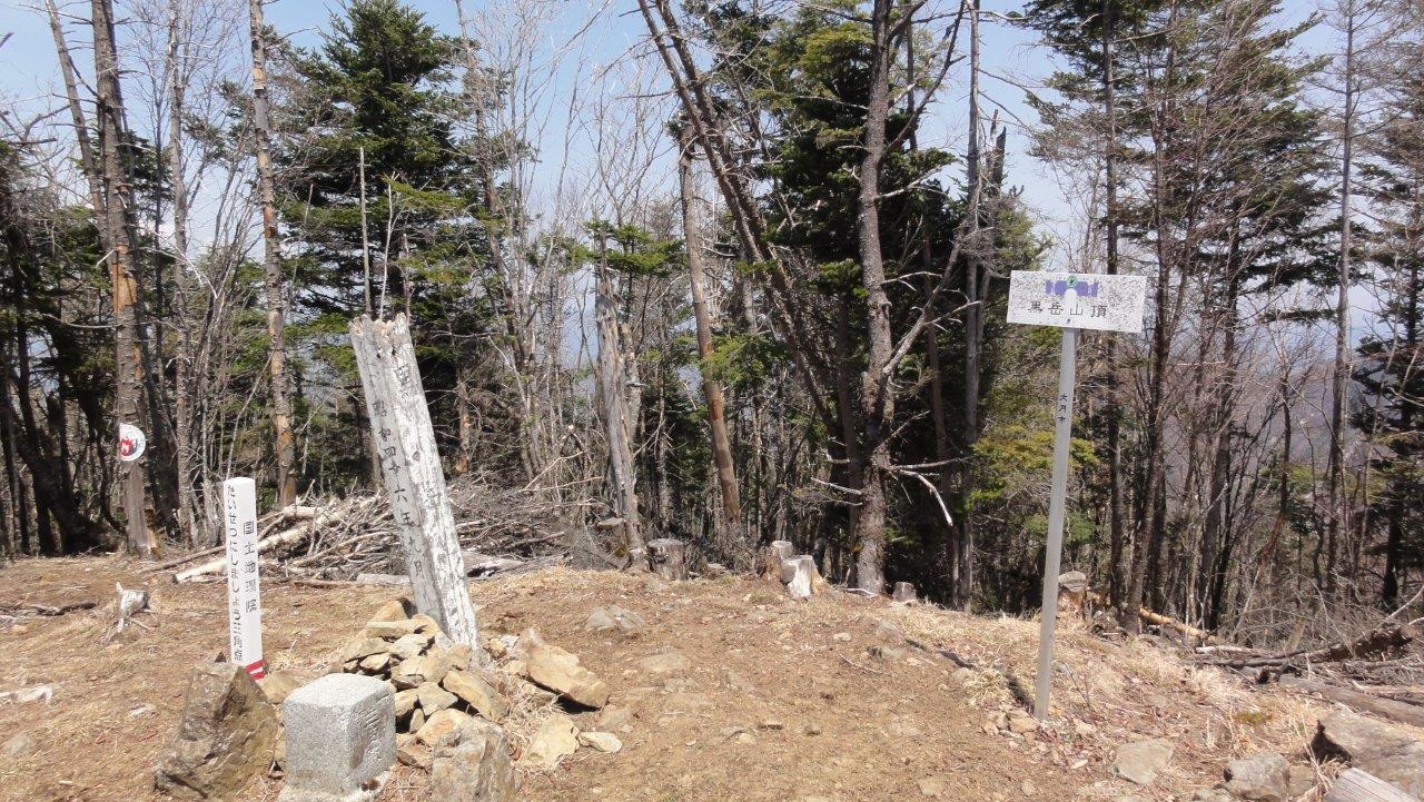 湯ノ沢峠から30分で湯ノ沢峠登山口です。標識は倒れており登山道の標識の整備もあまりよくありません。