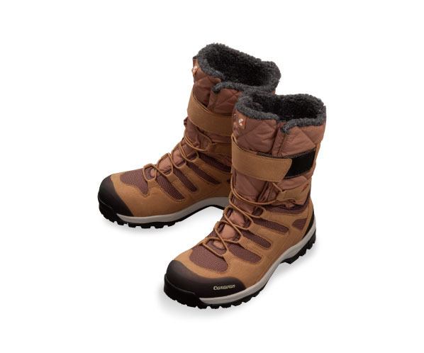 スノシュで雪のフィールドを歩くシーズンが近づいてきたが、登山靴に履き替えてスパッツをつけるのは面倒ですね。今年になってだと思うがキャラバンシューズのメーカーがキャラバンシューズの人気モデル「C1_02」の機能を受け継いだ作りになっている長靴を販売していた。写真を見てください。