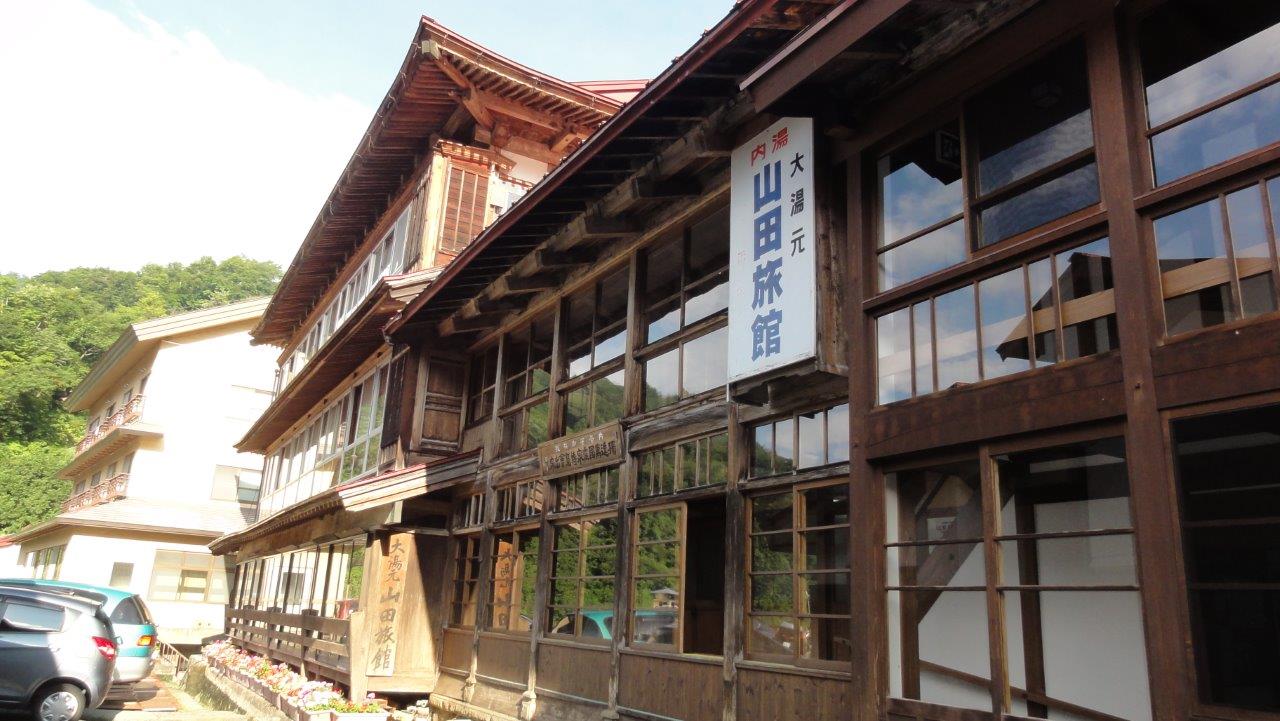 山田旅館は江戸時代からの温泉宿で風格がありますね。本館の囲炉裏や受付も立派です。