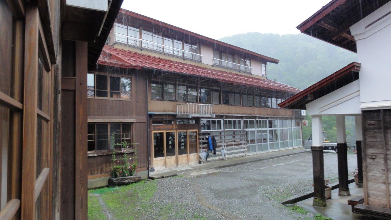 8月30日台風接近で天候がどうなるか気にしつつ白馬三山縦走計画を実行したが栂池高原ロープウェイ乗り場に着く頃には雨が激しくなり 今後の天候の回復もわからない不安定な天候なので縦走はあきらめた。エスケープルートは小谷温泉です。早速小谷温泉の秘湯・山田旅館 に予約を入れて酒屋でお酒を購入し宿に向かった。