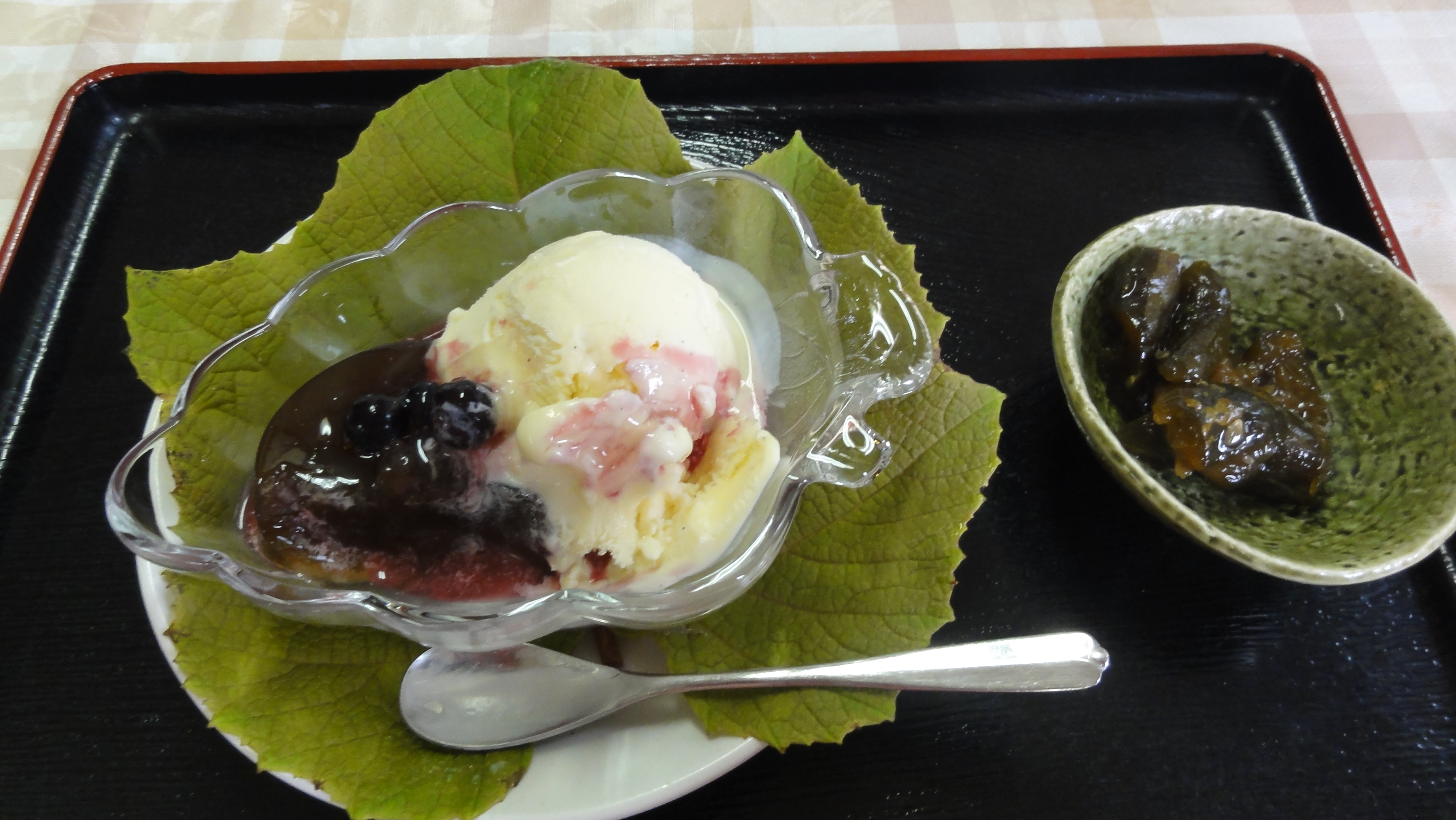 釜池のレストランで山葡萄のゼリーアイスを頂きましたがおいしかったですよ。
