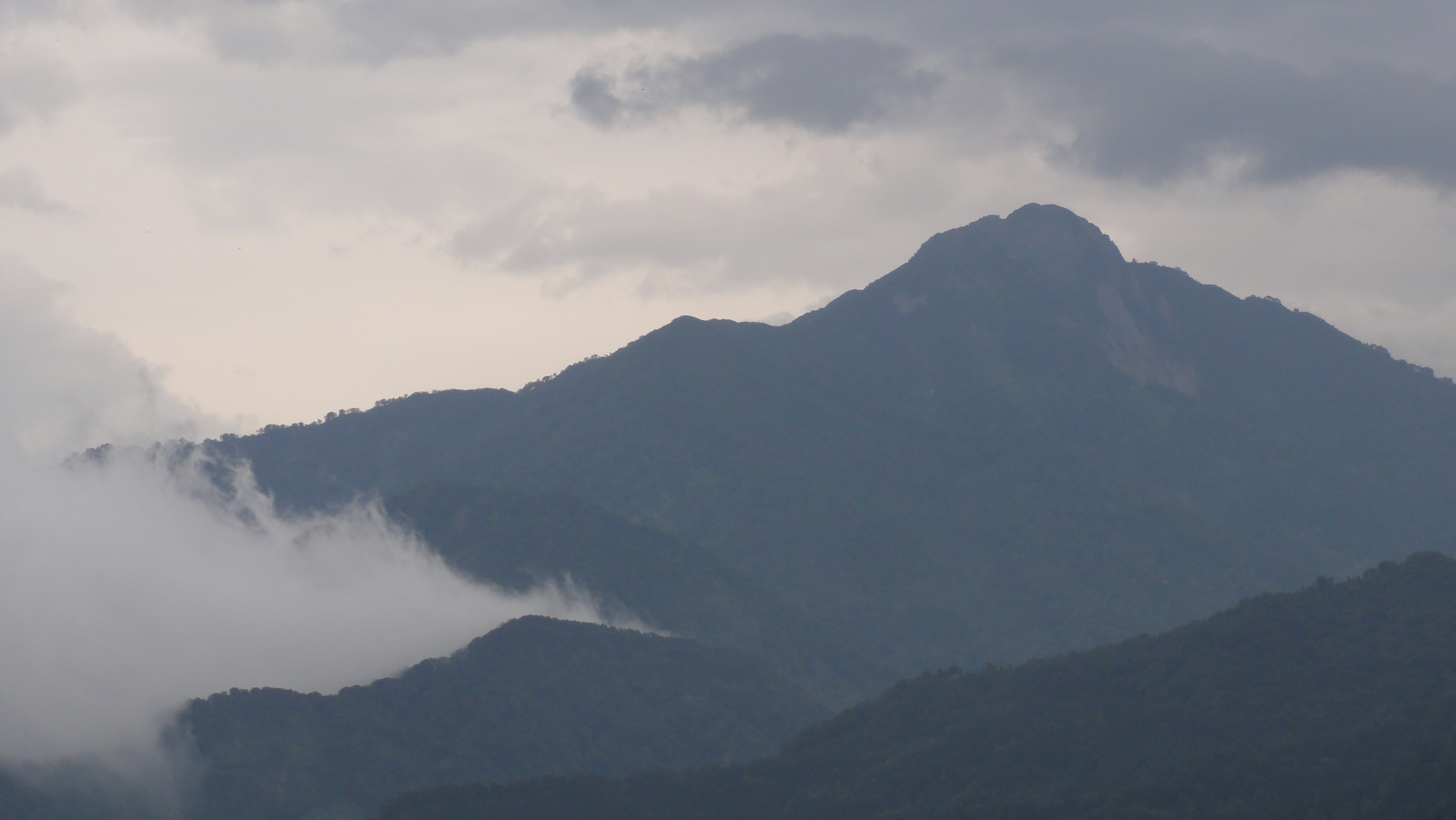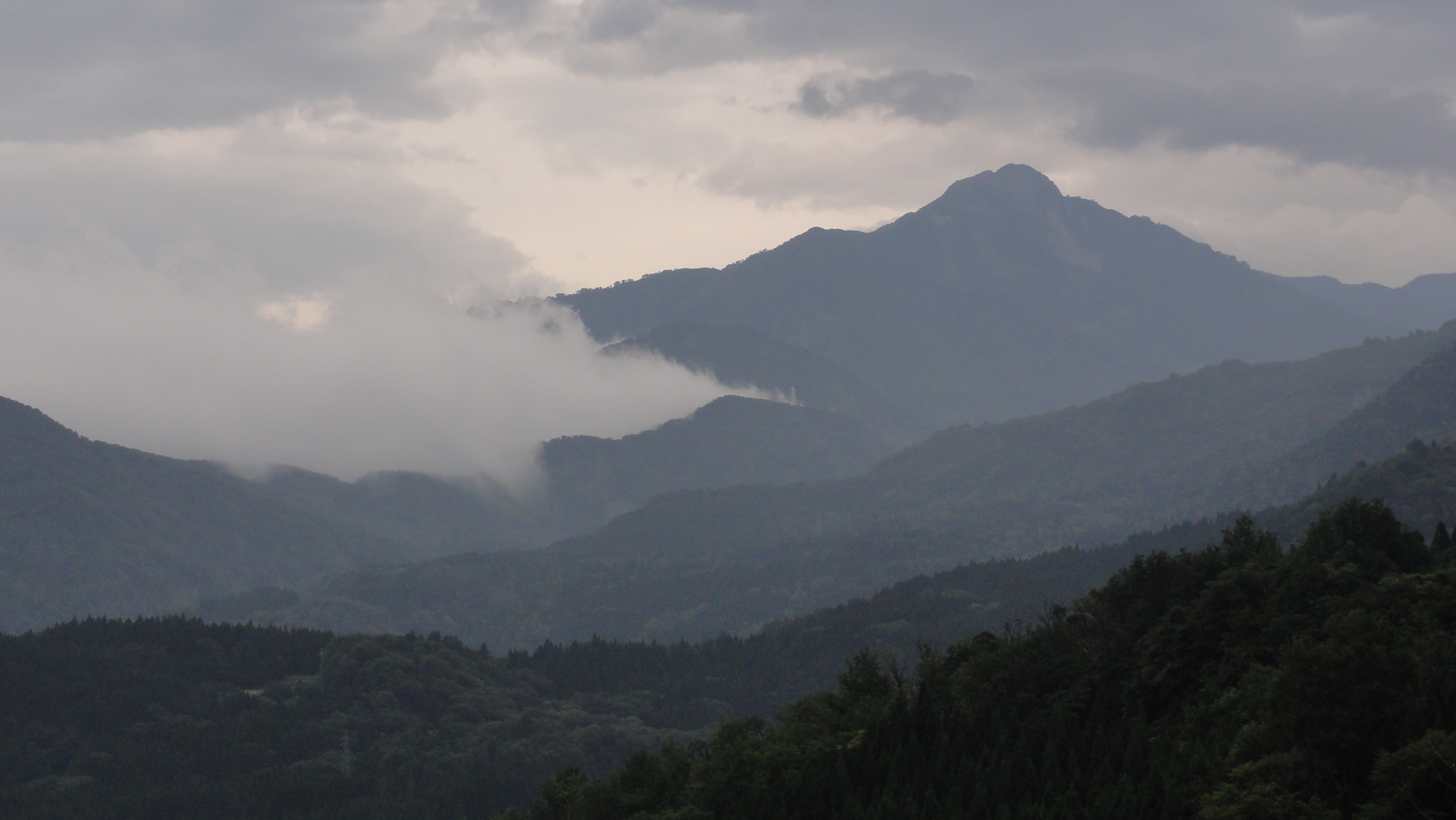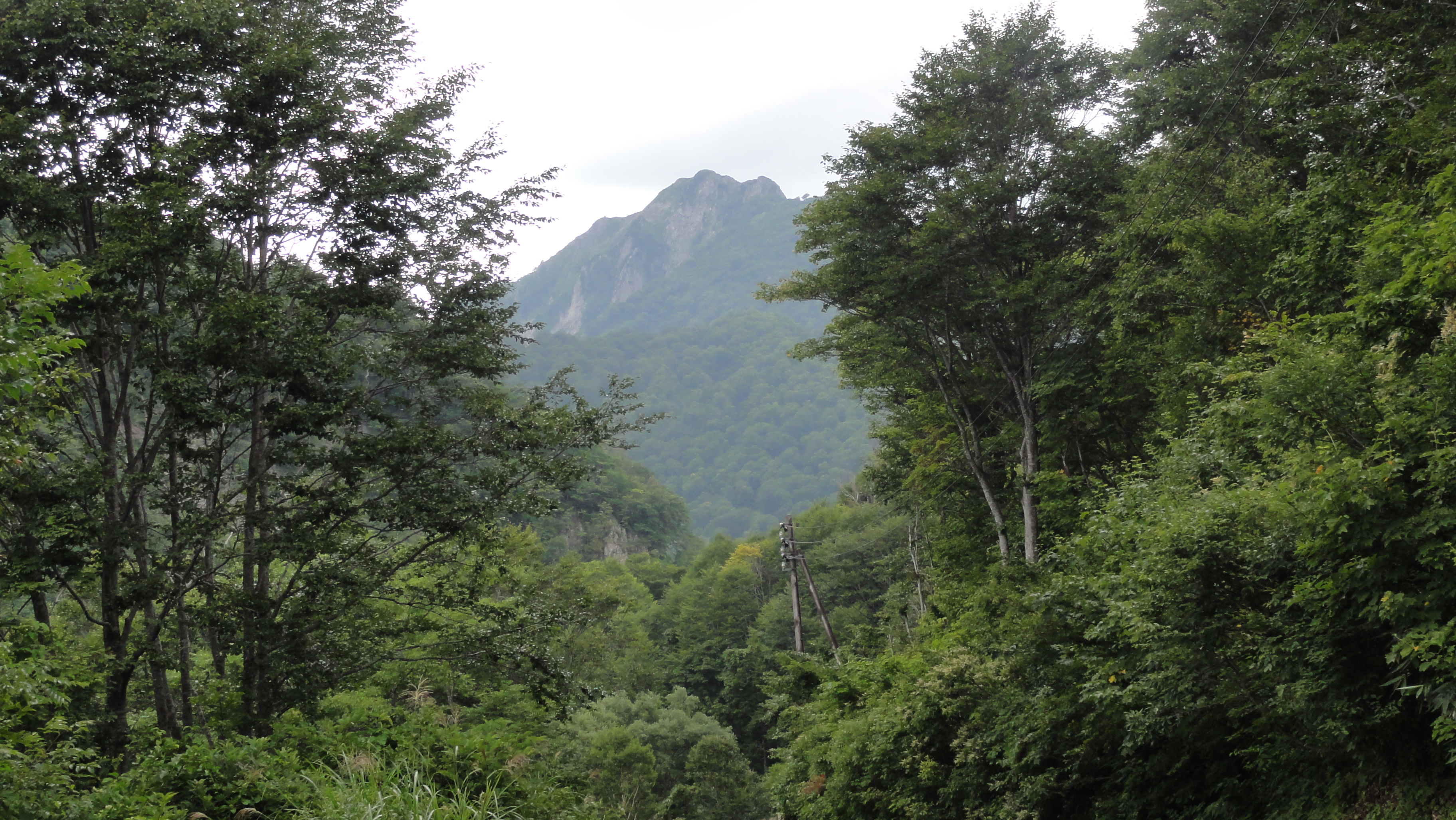 木々の間から雨飾山が見えました。