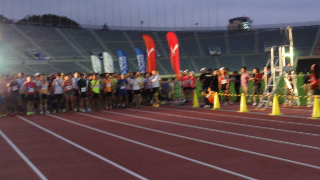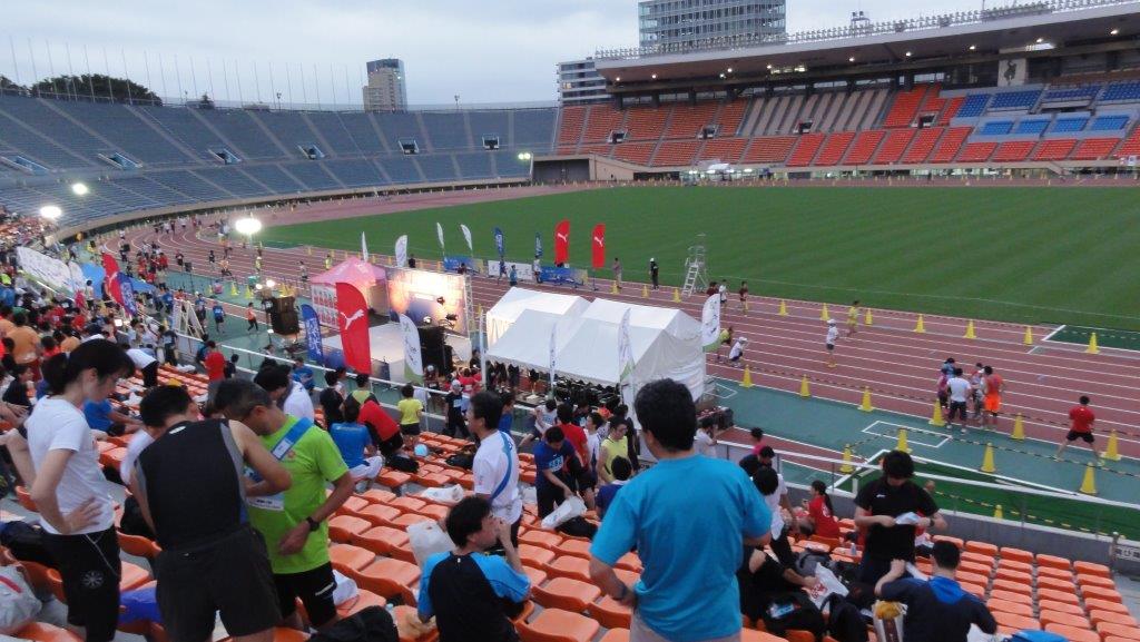 8月2日(金)PM7:00~3日(土)AM7:00の12時間でどれくらい走れるかのフライデーナイトリレーマラソンを走ってきました。(詳細はこちらのHP)国立競技場のトラックとスタンド下の1週1.4Kmのコースです。