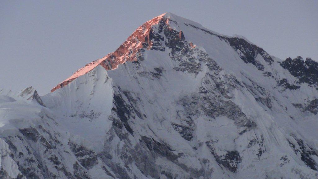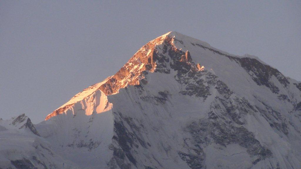 オチョユーの山頂に夕日が当たってきれいでした。