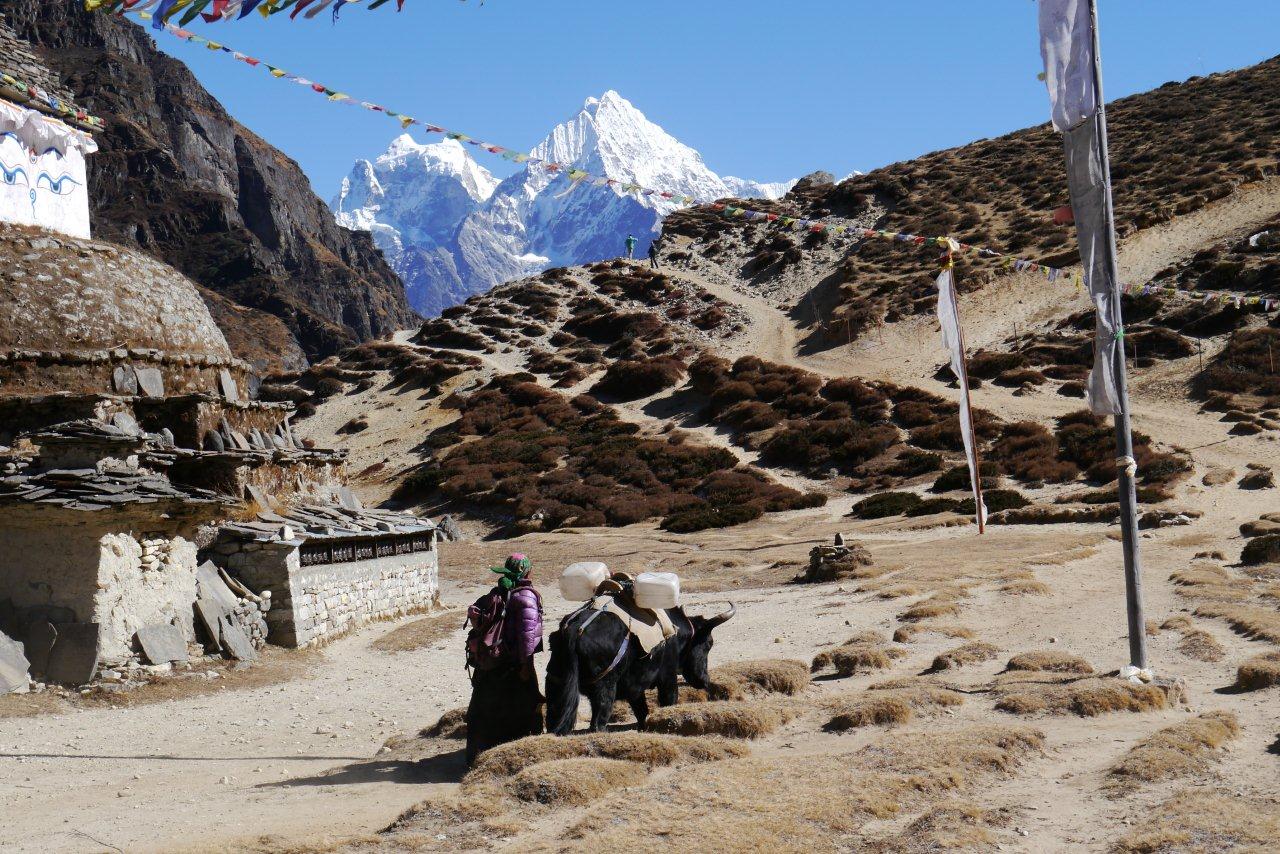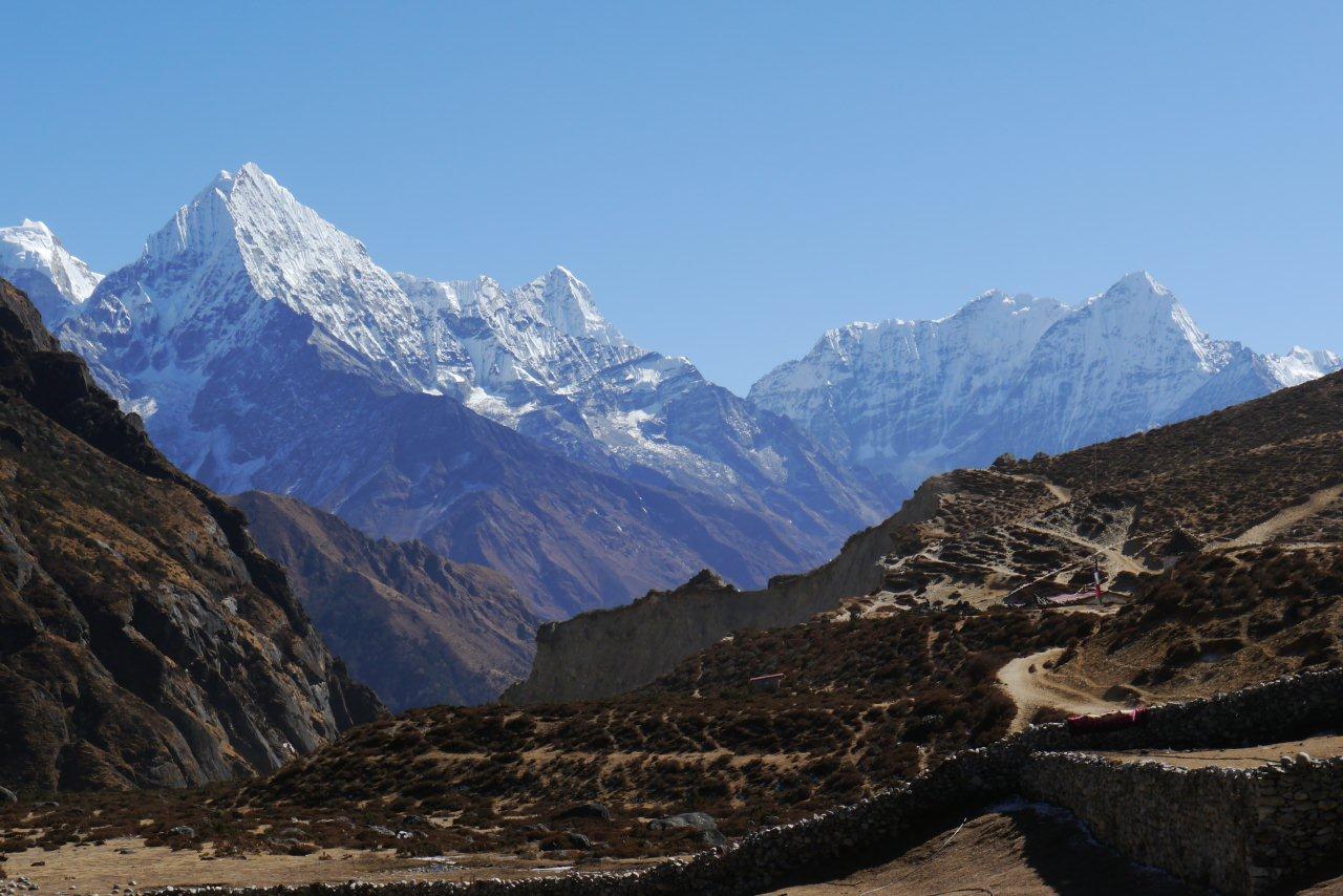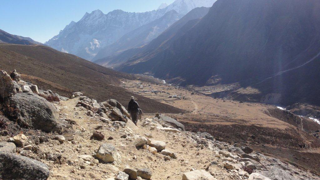 トレッキング11日目11月19日はマラルン村4200mからパンポチェを経てコンデリを眺めながらターモへ3490mまで下ってい きます。歩行時間は4時間です。ここまで降りると酸素が濃くなってきますね。