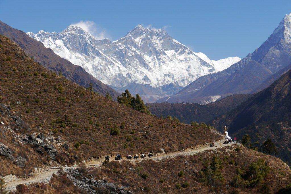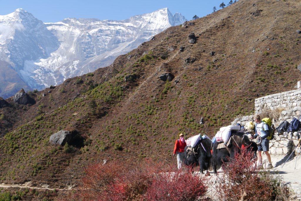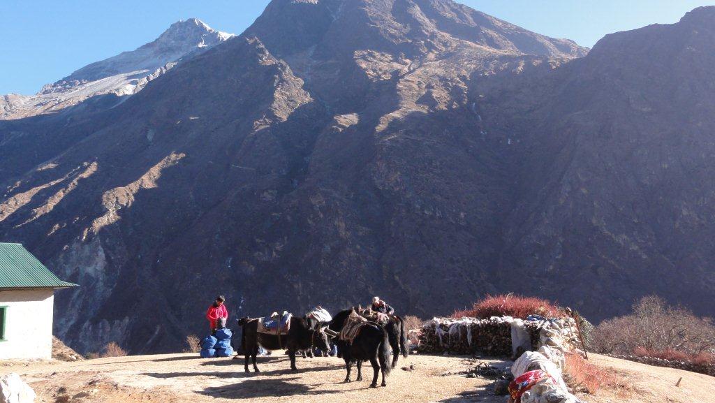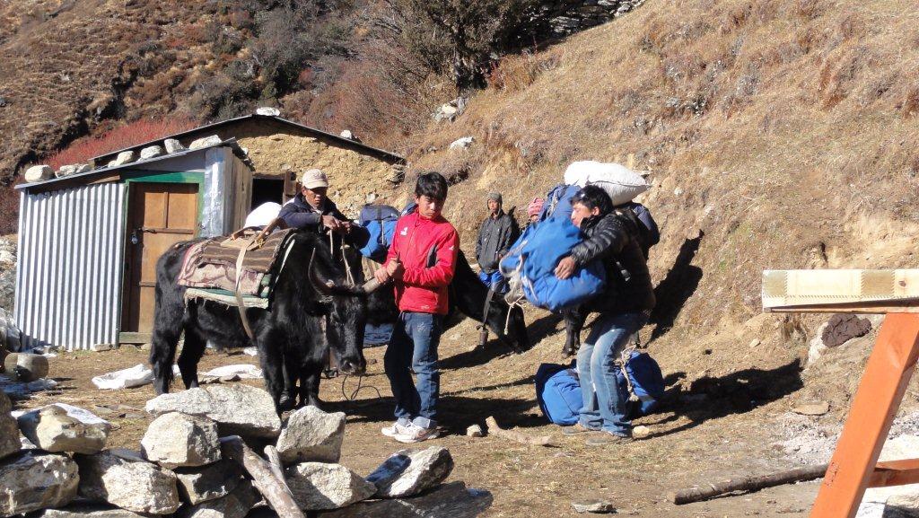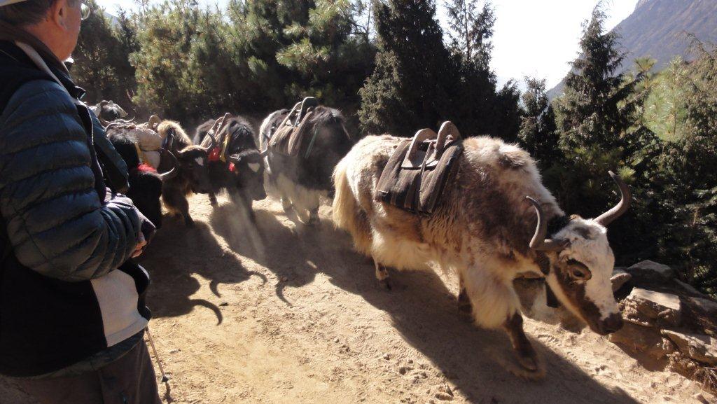 その横を生活物資運搬のヤクが行きかいます。