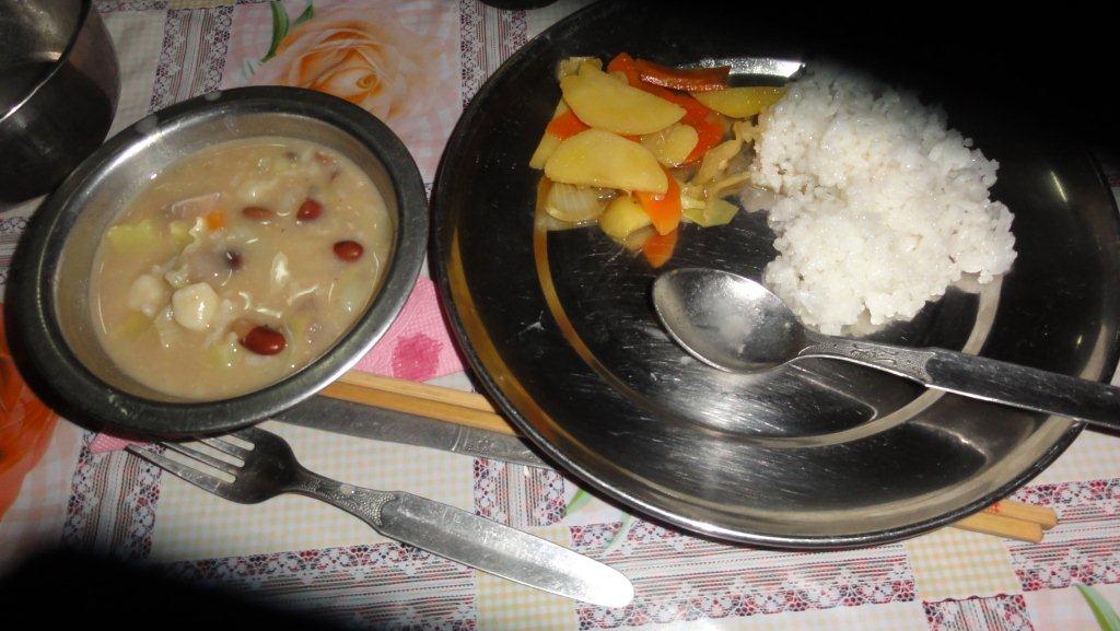 体調を崩しているS氏は宿に到着すると湯たんぽを抱いて(妊婦のように)すごしています。みんなでベビーちゃん抱っこしてるのと冷やかされています。高山病ではなさそうですが下痢がとまらないようです。