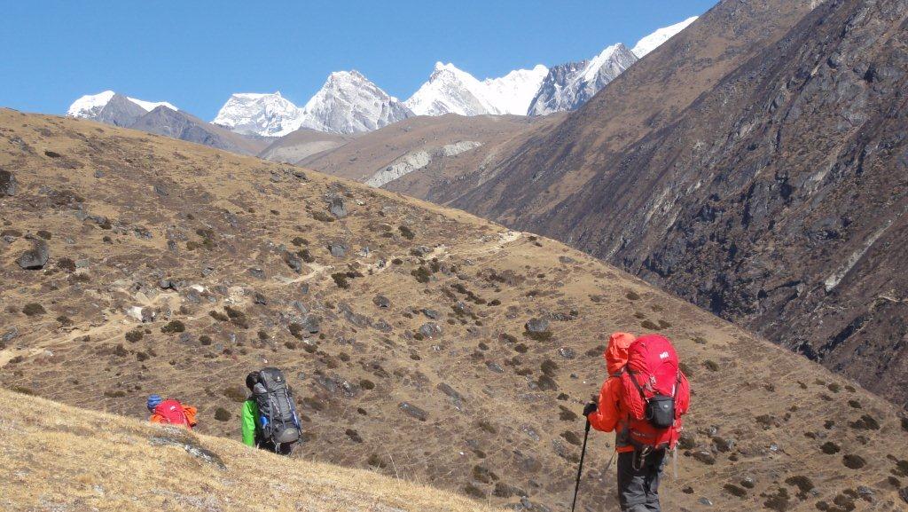 4日目11月112日はキャンヅマ3550mからモンラ3972mまで約3時間の歩行です。いよいよ富士山を越える高さにやってきます。急な 登りもありますがタマセルク、カンテガの展望を楽しみながらのトレッキングになりそうです。