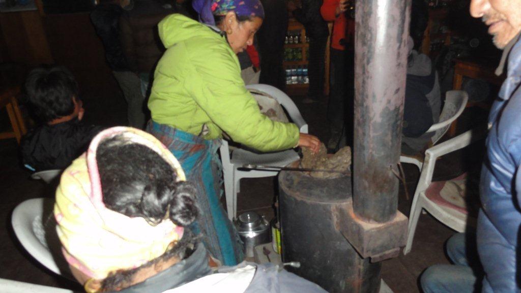 このあたりは木生えていないのでストーブの燃料はドッキョやヤクの糞を乾燥させたものを燃やします。