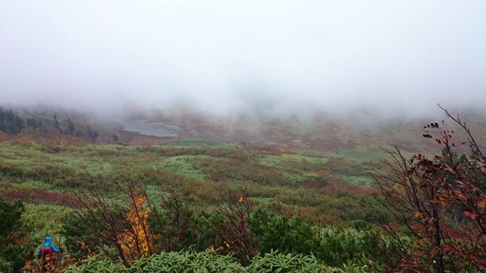 黒沢池も雨とガスでかすんでいます。妙高山に登っても楽しくなさそうでピッチを上げての下山となりました。