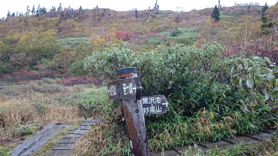 紅葉が見頃ですが小雨なのでちょっと残ですが視界は良いので火打山、妙高山は良く見えていました。