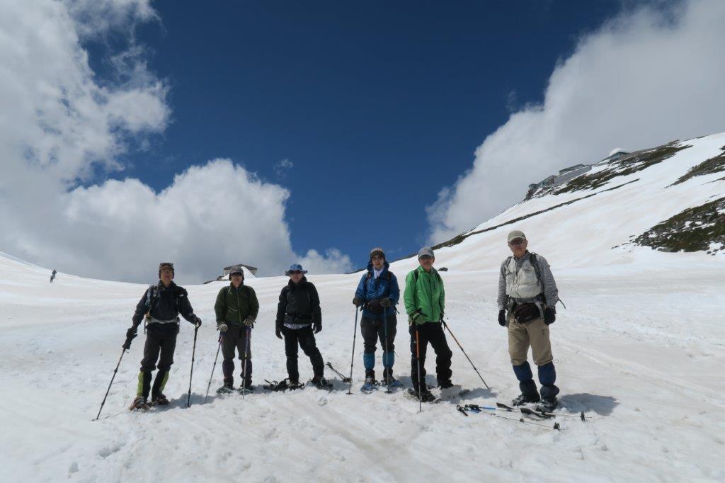 晴れ時々曇りであったがよい天候でした。暖かい分雪がシャーベット状でスノシュが滑り歩きにくかったです。