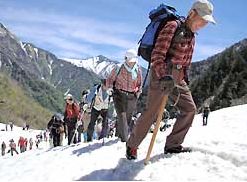 実行委によると、今年は例年より残雪が1~2メートル多いそうだ。先人のご苦労があっ て我々は今、安全に登れると思うと感謝の念に耐えませんね。