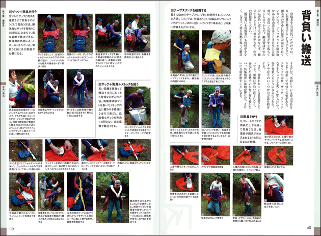 遭難を防ぎ、安全登山を実現する山のトラブル脱出法についてである。山で事故・遭難を起こしてしまったときの対処法につ いて、ごく簡単なレベルから本格的救助法まで詳細に解説した、本邦初の総合的な山岳レスキュー専門書ですと紹介されている 。一般登山者に役立つ救助の要請方法や救急法、そして滑落や道迷いを起こしてしまったときの対処の仕方などはもちろん、岩 場や雪山の救助技術、搬送法や捜索法もくわしく図解し、上級者やレスキューに携わる人のための高度な技術も収録しているよ うでその一分が公開されている。本読んでも実践訓練をしておかないと役立たないでしょうね。でも読んでおこうかな。 登山技術全書『セルフレスキュー』はこちらから
