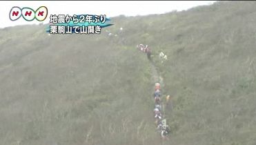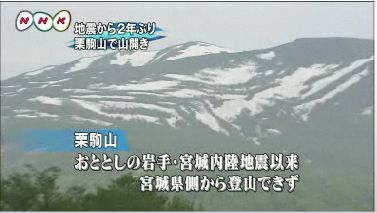 2008年6月の岩手・宮城内陸地震で、宮城県側からの登山ができなくなっていた栗駒山で、登山道が復旧し、2年ぶりに山開きが行われたとTVニュースでやっていた。宮城、岩手、秋田の3県にまたがる栗駒山は、岩手・宮城内陸地震以来、宮城県側から登山できなくなっていたが、一部の登山道の安全が確認されたため、5月23日に2年ぶりに山開きが行われたとのこと。