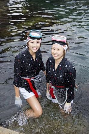 2010年もイベントへの参加は続く予定で久慈のPRに頑張りたい」と 意気込んでいるそうだ。昨夏は新人で、「先輩たちのように深くまで潜れなかった」という2人だが、今夏も「潜りたい」と話 している。海女修業は厳しいが、一層の活躍が期待されているので岩手に行ったら応援してきてくださいね。