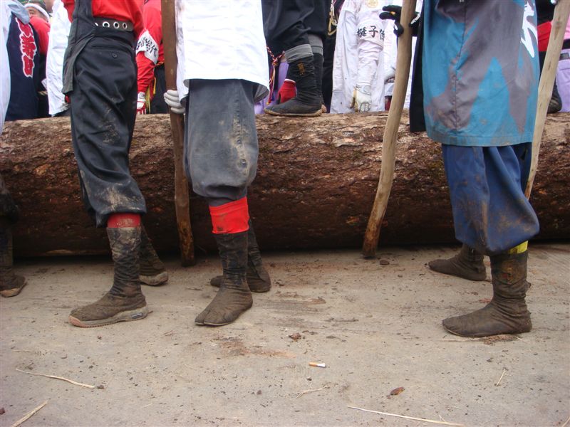 つのに乗っている人も雨で大変でしょうね。でも6年に一回のお祭りだから名誉になるのでしょう。