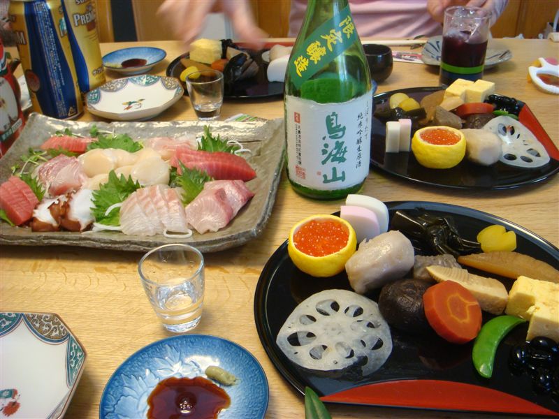 女房手作りのおせち料理で、お酒は鳥海山で新年会の始まりです。