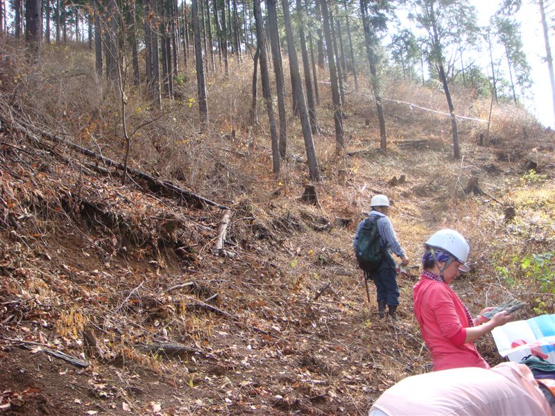 12日に高尾の森のボランティアに行ってきた。(高尾の森つくりの会はこちら)今回も100名を越える人が集まり、間伐や下草刈りの作業だ。私の班の担当は下草刈りです。写真のような間伐の終わった急斜面で倒した木の枝を払ったり、下草を刈って地ごしらえを行う準備です。
