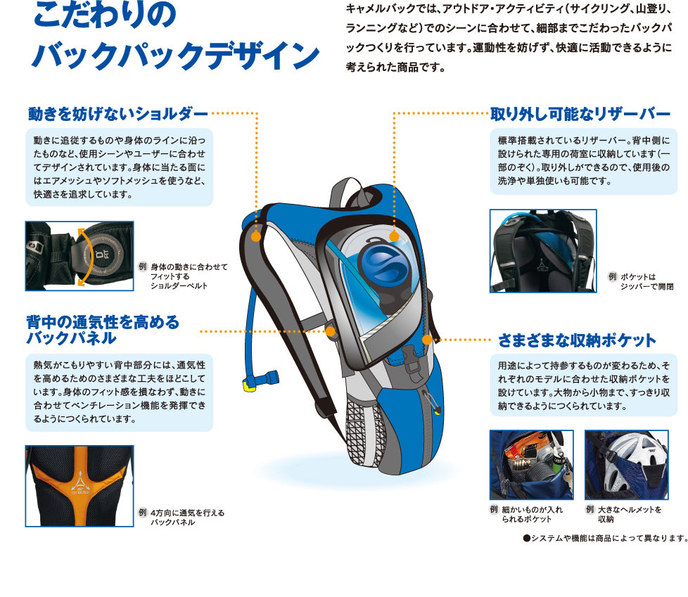 左の写真が私が購入したバックパックつきのキャメルバッグです。