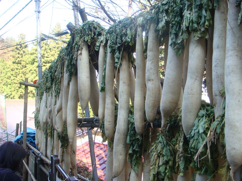 参道の途中にはたくあんにするのでしょうか大きな大根がたくさん干していました。冬支度を感じますね。