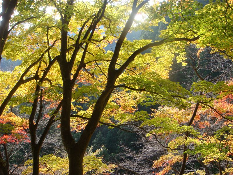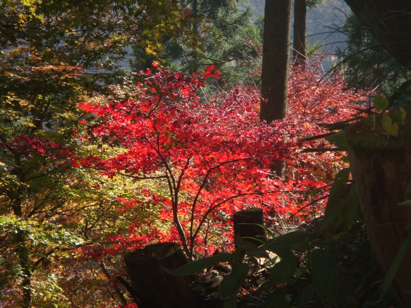 ケーぶりカーの駅に向かう途中に太陽に輝く紅葉がとても良い感じだったのでパチリ1枚。