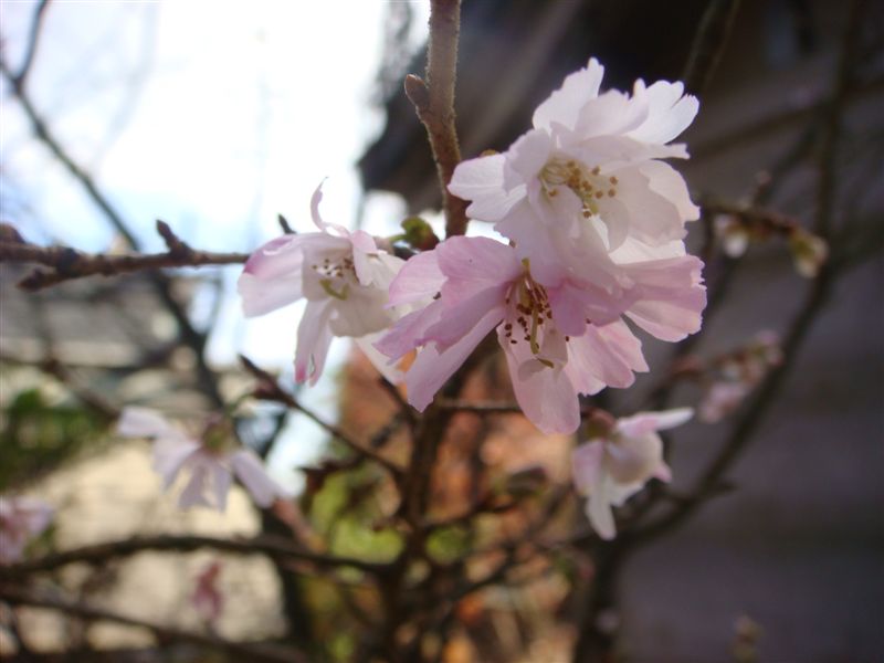 神社の裏手に冬桜が咲いていました。紅葉と桜もいいですね。