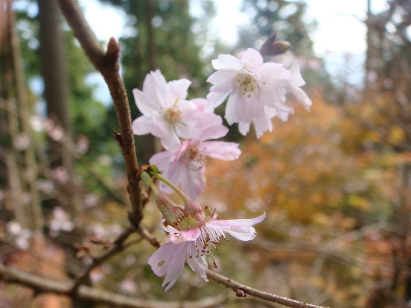 途中の斜面には冬桜が10本位あり、紅葉を背景にきれいに咲いていました。