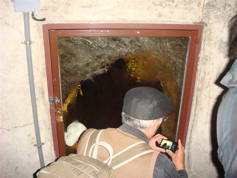 仕込み水は山から沸いているのを使っていますがトンネルのなかにとうとうと流れています。ガーデンテラスにはここから引いた水があり飲めますよ。