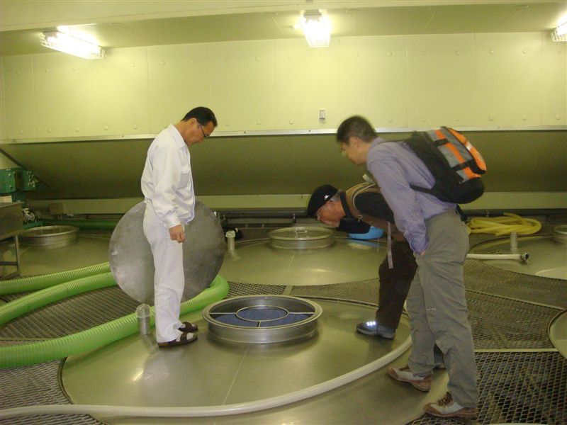一般コースが終わり、特別に仕込んだ後の発酵中のタンクを見させてもらいました。とても清潔なところです。タンクの蓋を取ってもらいました。ぶくぶくと発酵真っ盛りです。この中に落ちたら即死です。(炭酸ガスが充満しているため)注意深く覗きました。