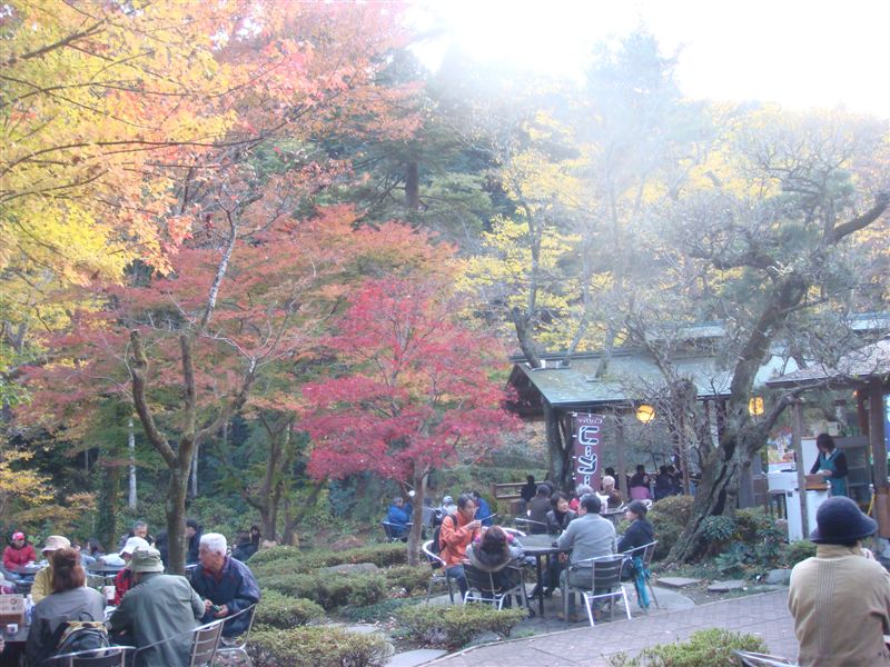 見学が終わったら紅葉真っ盛りの澤乃井園のガーデンテラスで、出来立てのお酒で楽しみました。4人で720ml2本を空けて良い気分で帰途に着きました。 ・・・が新宿で下車して2次会までしてしまいました。良い一日でした。