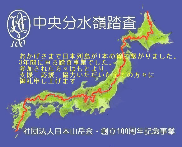 川や雨水を太平洋側と日本海側に分ける列島の背骨に当たるのが分水嶺(分水界)であるが、一番高い所は乗鞍岳の3026mだが 一番低い地点はどこかなと調べていたら『中央分水嶺踏査』結果がみつかった。日本山岳会では、2005年10月6日に創立100周年 を迎え、その記念事業のひとつとして「中央分水嶺踏査」を実行したようだ。(調査結果のHPはこちら) そして、2006年11月4日に全てのルートを完踏しその報告書が出ている。北は北海道・宗谷岬から南は九州・佐多岬まで全長約5000kmの日本海と太平洋を分かつ中央分水嶺を一本の線で繋ぎ歩き、踏査 している。関連資料には分水嶺の山一覧(こちら)もあった。最高 地点は乗鞍岳だが、最低は北海道・新千歳空港近くの標高約20メートル地点だそうだ。今まで登った山やこれから登る山が分水嶺か知っておくのも山に登る楽しみの一つになりそうだ。