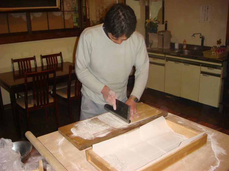 今日はオーナが蕎麦を打って振舞ってくれます。