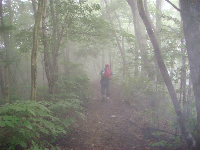 登り始めはガスが立ち込めていて雨が降ったら沢井にでも降りて一杯やろうと歩き始めた。