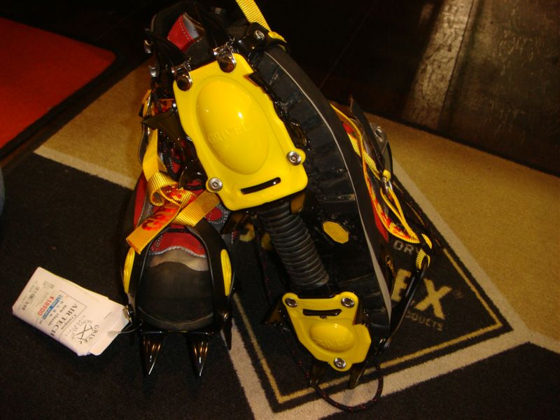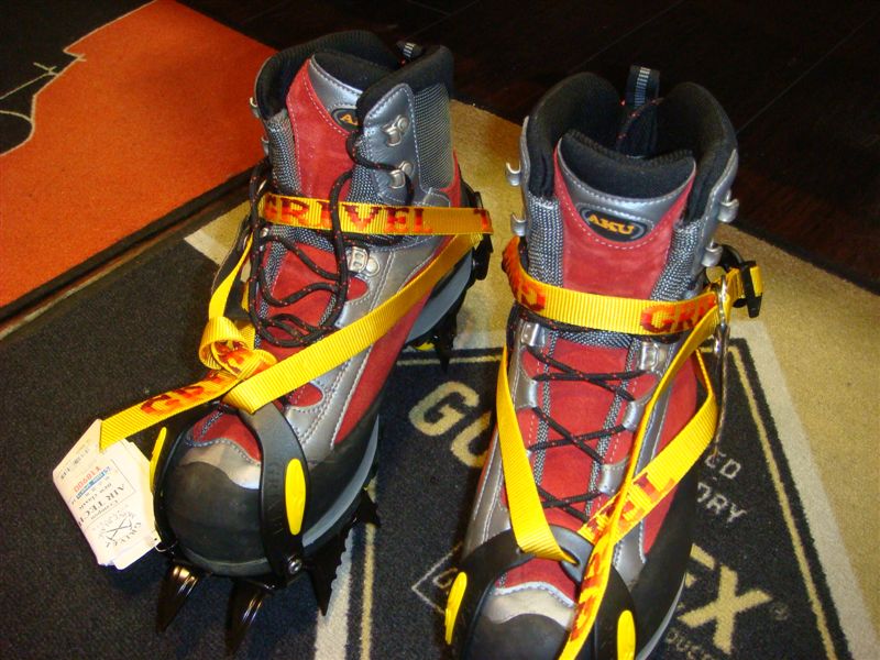 昨日登山靴を持って行き靴に合うアイゼンを購入した。靴のソウルに合う12本爪のアイゼンを選んでもらい長さの調整と横ずれしないかチェックしてもらった。止め具はワンタッチ式のものもあったがバンド式のものの方がトラブルは少ないとのことでこちらに決めた。