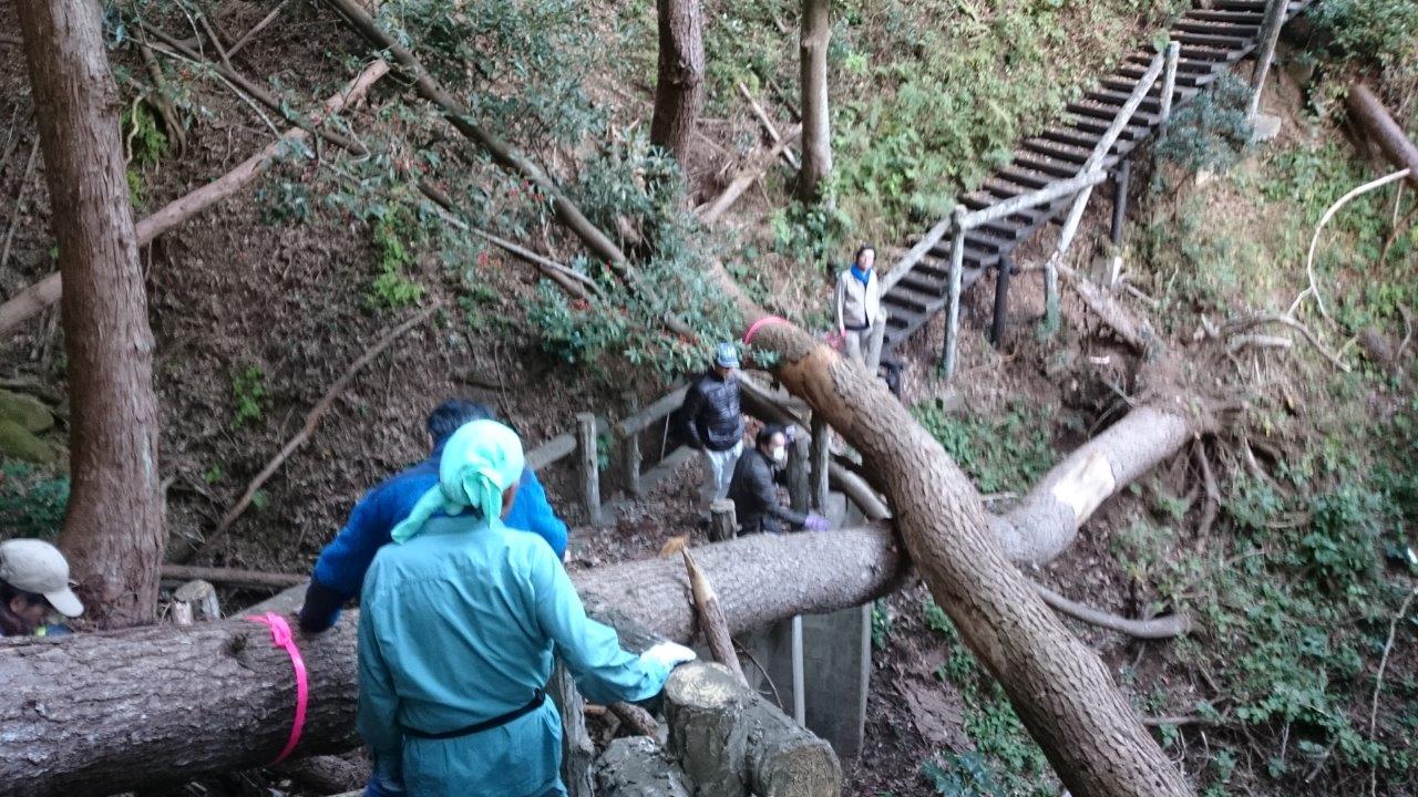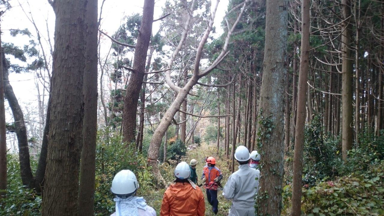 私の班は龍前崎から遊歩道を入った500m位の間の倒れた機や遊歩道に倒れて来そうな枯松の伐倒です。