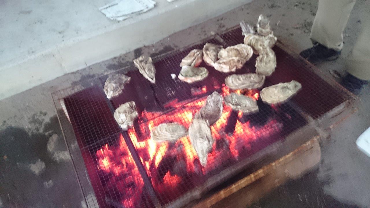たくさんの牡蠣を焼いて食べました。美味しいですね。焼いている人は大変です。