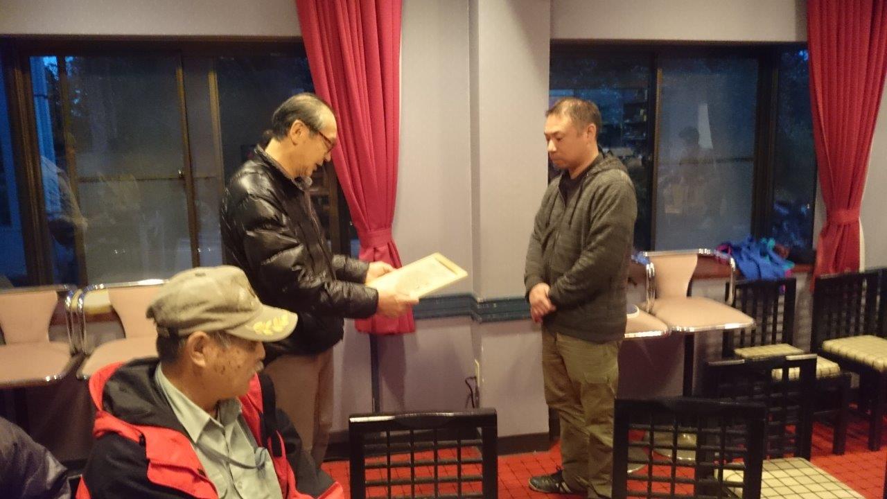 そした5年間に渡り私達の定宿にした椿荘の若旦那に会の代表から感謝状を贈呈いたしました。ありがとうございました。