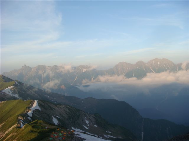 ガスも取れてきて景色は最高である。槍、穂高も一望である。今日は笠には登らず明朝にした。これが失敗・・・・・・明日へ続く・・・