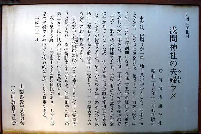 昨日山梨に行ってきたがいつも気になっていた甲斐一ノ宮の浅間神社(中央道勝沼ICから10分くらい)に立ち寄ってみた。ちょうど夏越祭(6月30日)で大きな茅の輪が山門にあり茅の輪神事の参拝作法にのっとり夏越大祓をしてきた。(1日遅れてしまったが)境内に入ると夫婦梅の木が実をつけていた。