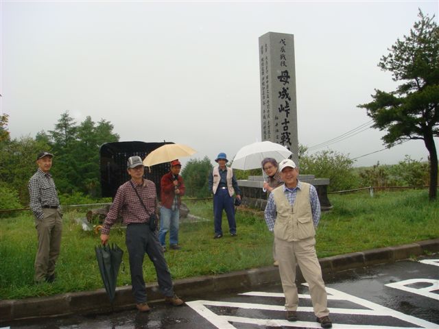 大鳥圭介率いる奥羽列藩同盟軍は、火器の性能、兵力の勝る板垣退助、伊地知正治率いる薩長軍の前になすすべなく破れてしまった古戦場である。冷たい雨の降りしきる中記念撮影をして沼尻高原ロッジに向かった。