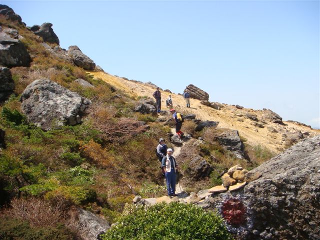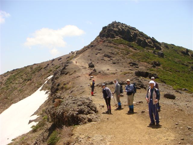 3月下旬のBCスキーでは強風に参ったが今回は多少風があるが心地よい程度である。沼尻コースは人気がないのだろうか登山口は大きな駐車場があるが山菜取りの人たちばかりの様だ。登山道で他の登山者と会ったのは位上りも下りも5組程度である。ゴンドラからのルートからは沢山の人がやってきてくろがね小屋のほうに降りていく。