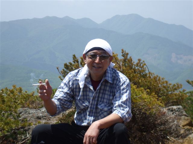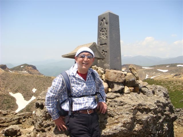 そして山頂へ到着。気持ちいいで~~す。吾妻連峰、磐梯山も等眺めも最高。昨日雨の中でかけるときはどうなることかと心配したが出かけてきてよかった。登山口から休憩を含めて3時間で山頂に立つことが出来た。お勧めコースは鉄山~避難小屋を経由してぐるりと沼平を見ながら稜線を周り下って来るのが良いようだが時間の関係で登ってきた道を下山することにした。下りも快調で途中根曲がり竹を取りながら2時間15分で登山口に到着。取ったたけのこはロッジに差し上げたところ大変喜ばれた。ロッジの温泉で汗を流し一路帰路についた。途中高速道路は事故渋滞で帰宅に1時間も余計にかかってしまった。出かける前はあまり期待していなかった天気だったが最高の天気に恵まれいい登山になった。