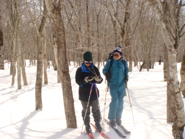 たんばらはまだ2m以上の積雪があり歩きやすく、ぶな林の中を歩き、鹿俣山BC スキーのためにカシミールでGPS-NAVI にルート及びウェイポイントを設定しナビゲーションによる移動を行ってみた。そして設定ルートとその軌跡の差を表示させてみた。軌跡結果を見てもらえば分かるが、ルートから外れているのは外れるとNAVIがどのような表示をするのかをテストするためである。実際ルートから外れた位置ではNAVI表示の針がルートからずれていることを示していた。指示されている方向に移動するとNAVIの表示もルート上に乗った。設定ルートと軌跡を表示させてみると実際の歩行と当たり前だが一致しているのが分かった。GPS-NAVI とその軌跡結果は下記参照ください。(説明も載せてあります。)