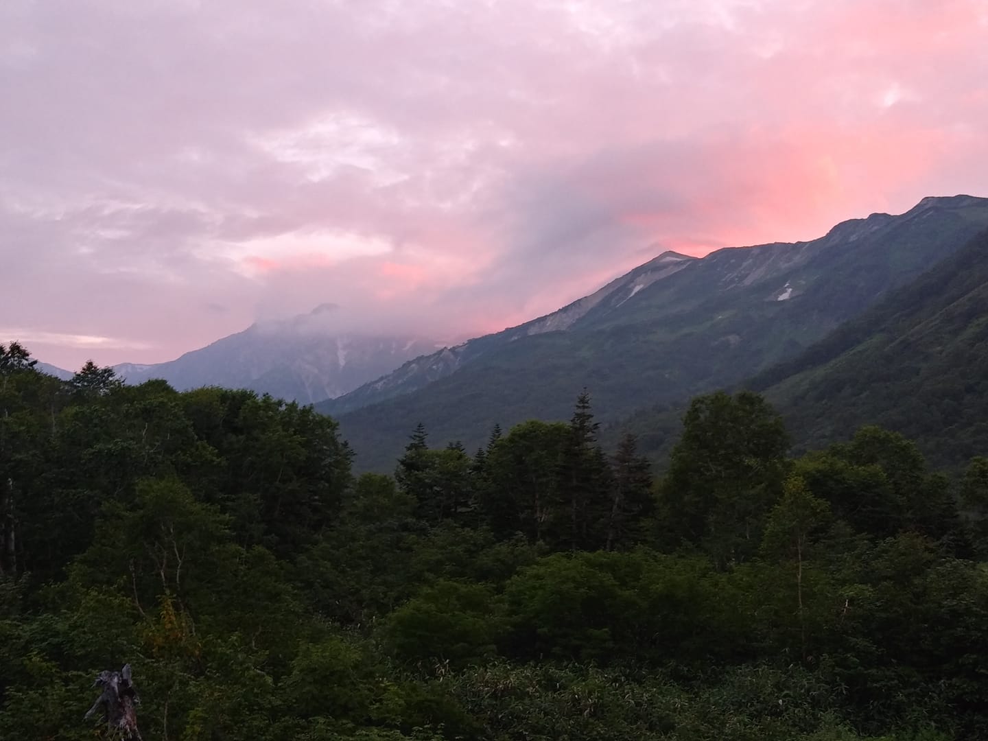 夕食を食べ終わると白馬岳方面が夕焼けでとてもきれいでした。