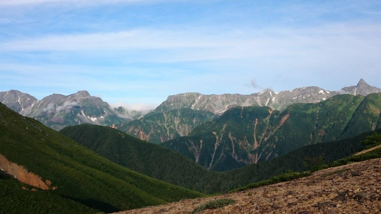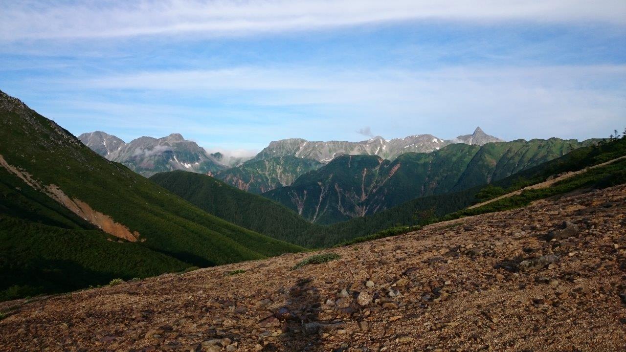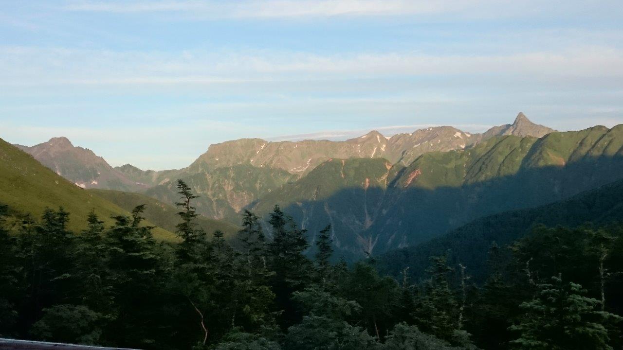 2日目の8月3日はご来光を拝んだ後に朝食です。おいしかったですよ。食堂からも穂高、槍が良く見えていました。