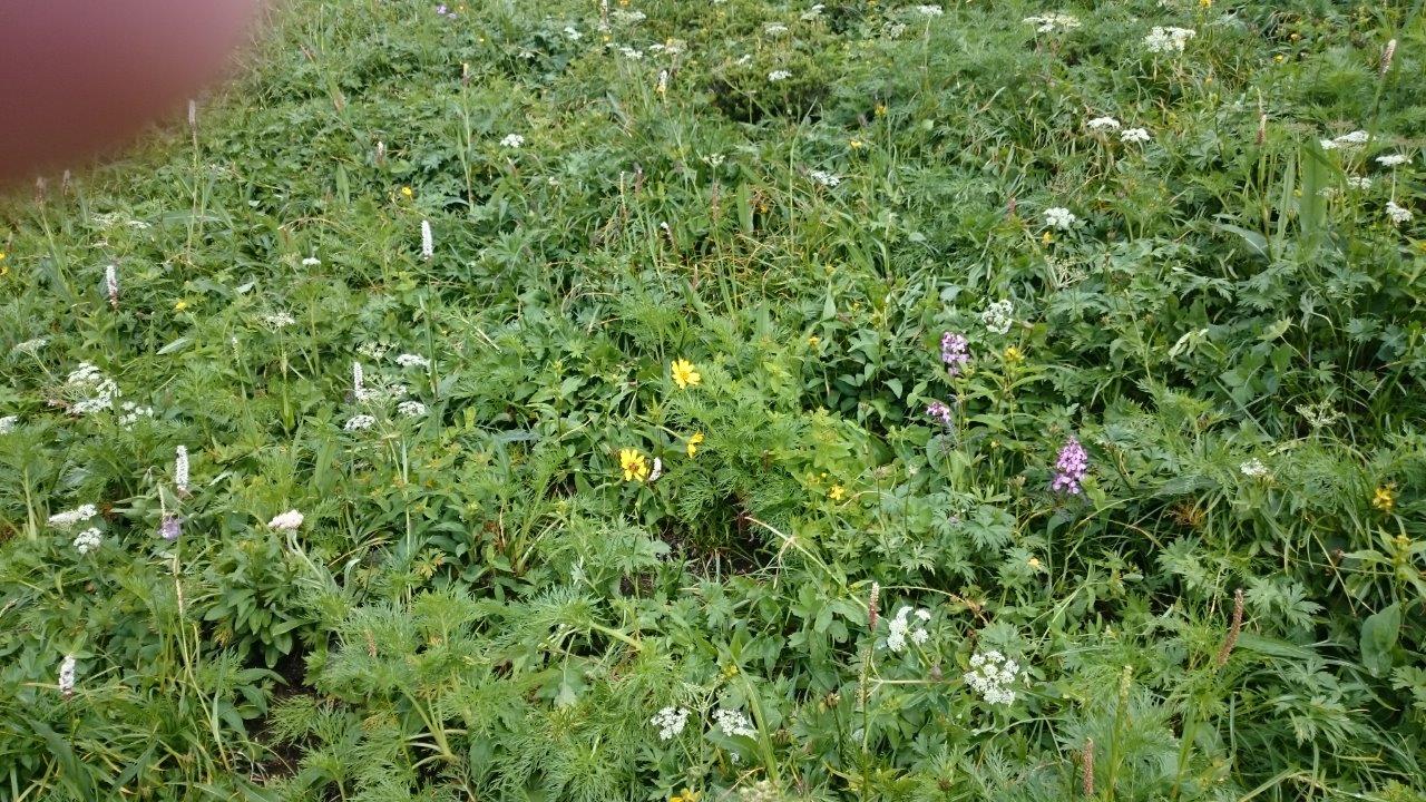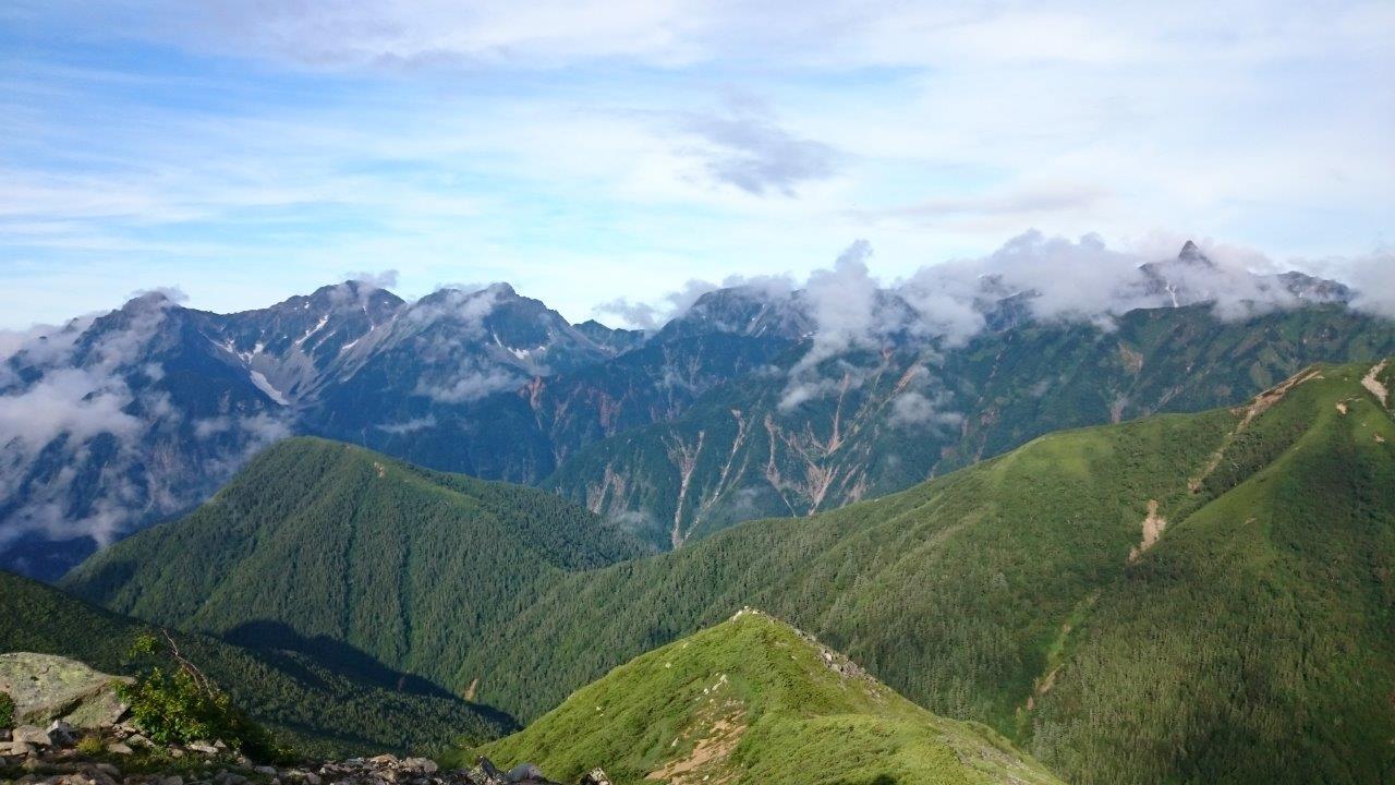 7時を過ぎるとガスが上がってきました。山の天気はすぐ変わるので心配です。コマクサやお花畑に癒されながらの縦走は気持ちがいいですね。
